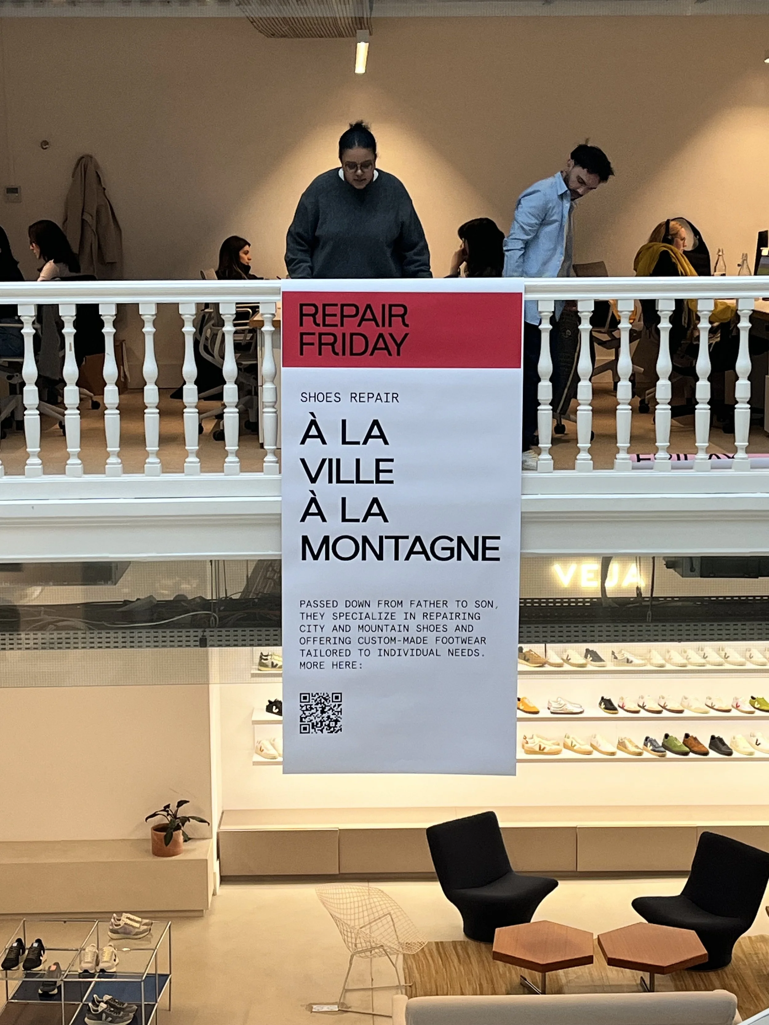 À l’occasion du Black Friday, VEJA a lancé le "Repair Friday", un festival dédié à la réparation plutôt qu’à la consommation. Les participants pouvaient venir réparer leurs objets abîmés, de la chaussure au gadget électronique, grâce à des artisans experts.